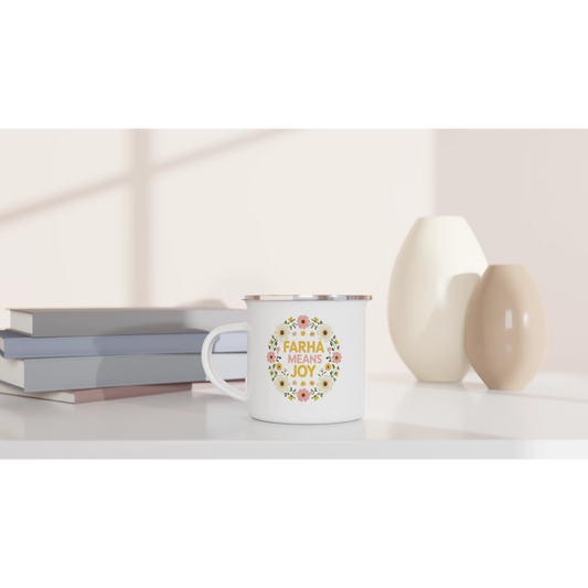 Farha Means Joy White 12oz Enamel Mug