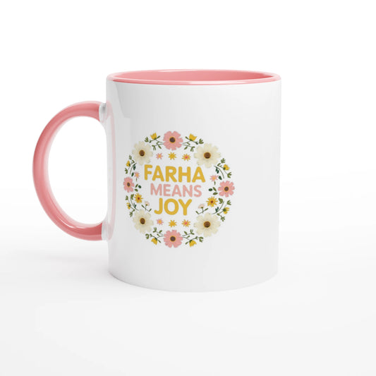 Farha Means Joy White 11oz Ceramic Mug with Color Inside